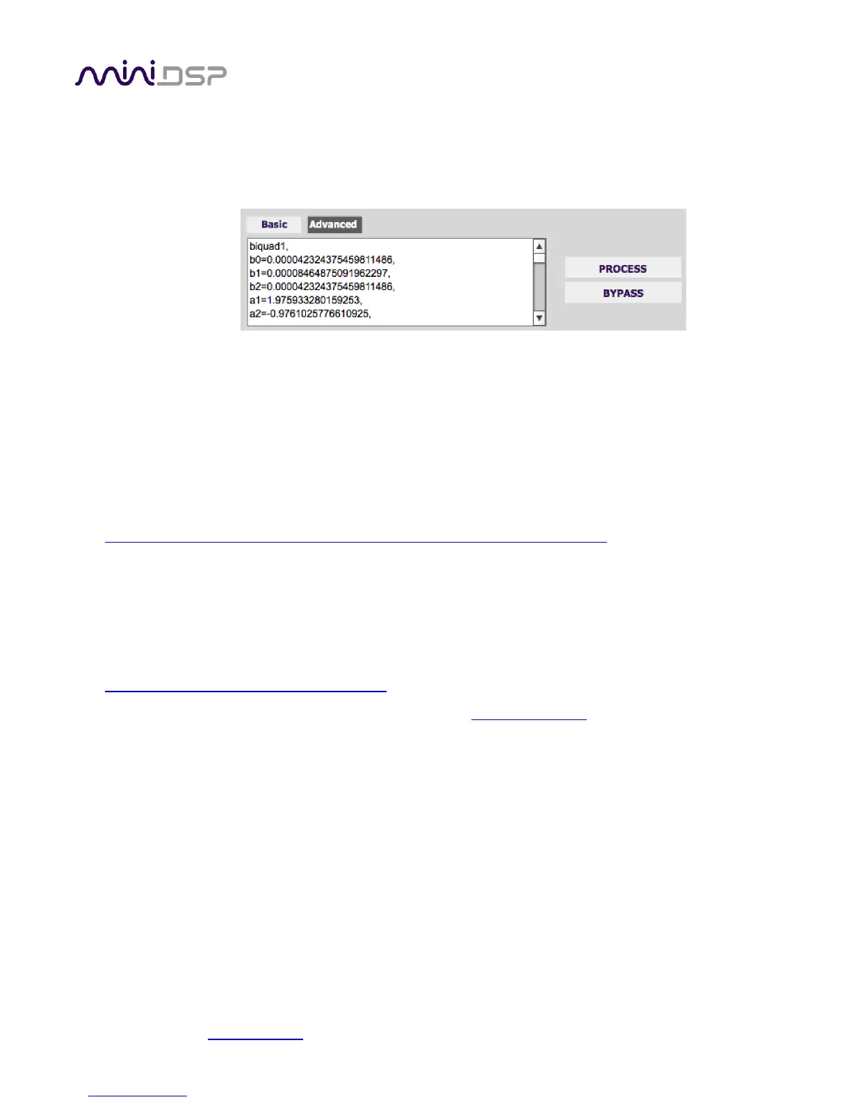 biquads need to be specified. After pasting in the coefficients, click on the Process button for