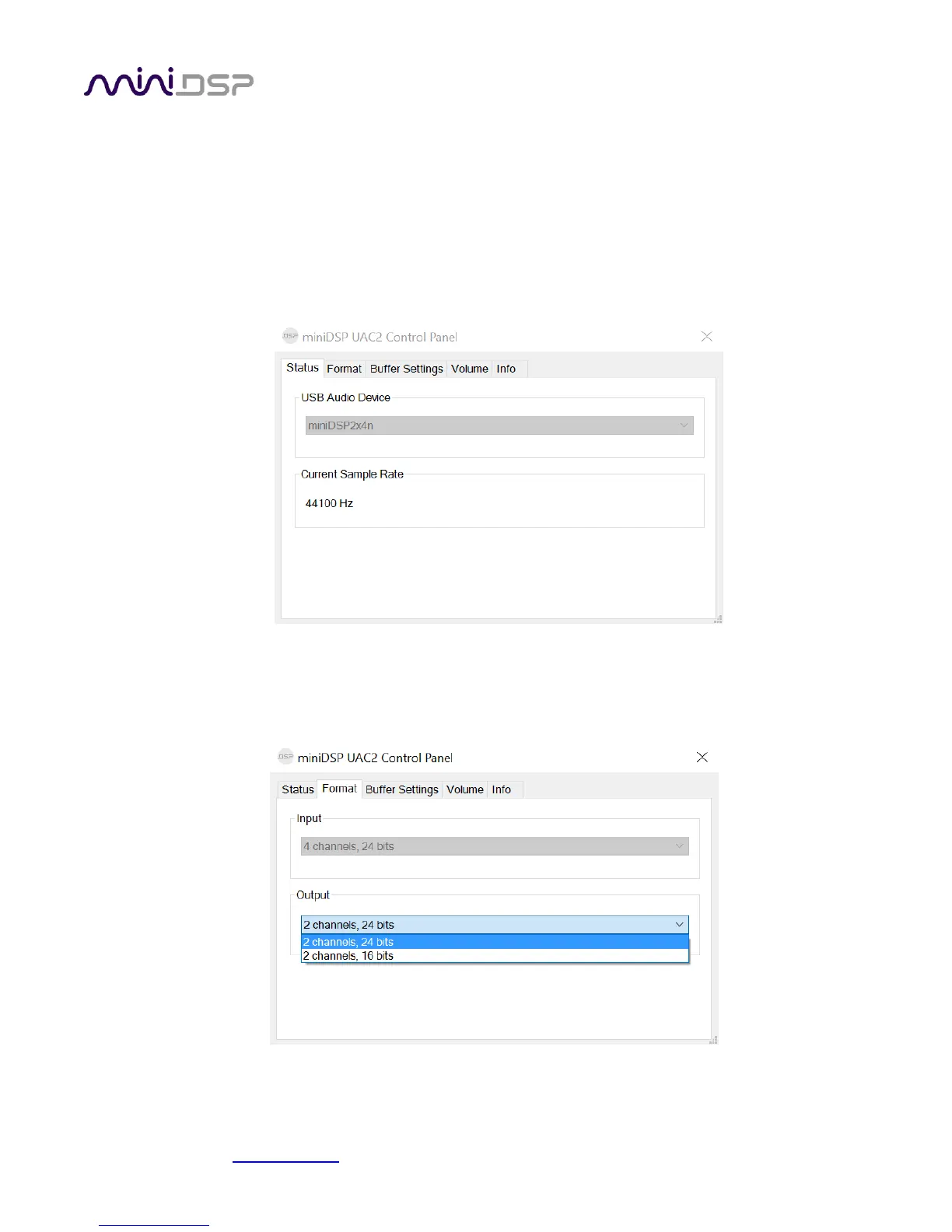 To configure the 2X4 HD, open the miniDSP UAC2 Control Panel (from Start Menu -> miniDSP Ltd). It has several