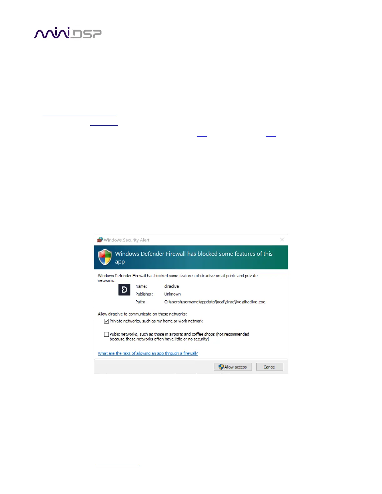 Note: the first time you run the DDRC-22 plugin and the DiracLive application, you may see a Windows Firewall