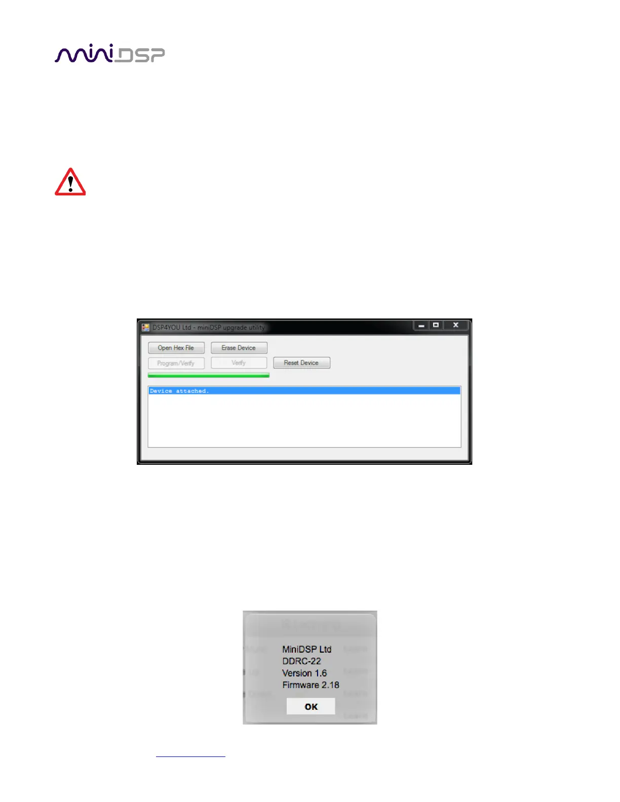 miniDSP may occasionally provide an update to the DDRC-22D MCU firmware to enable new features. To update