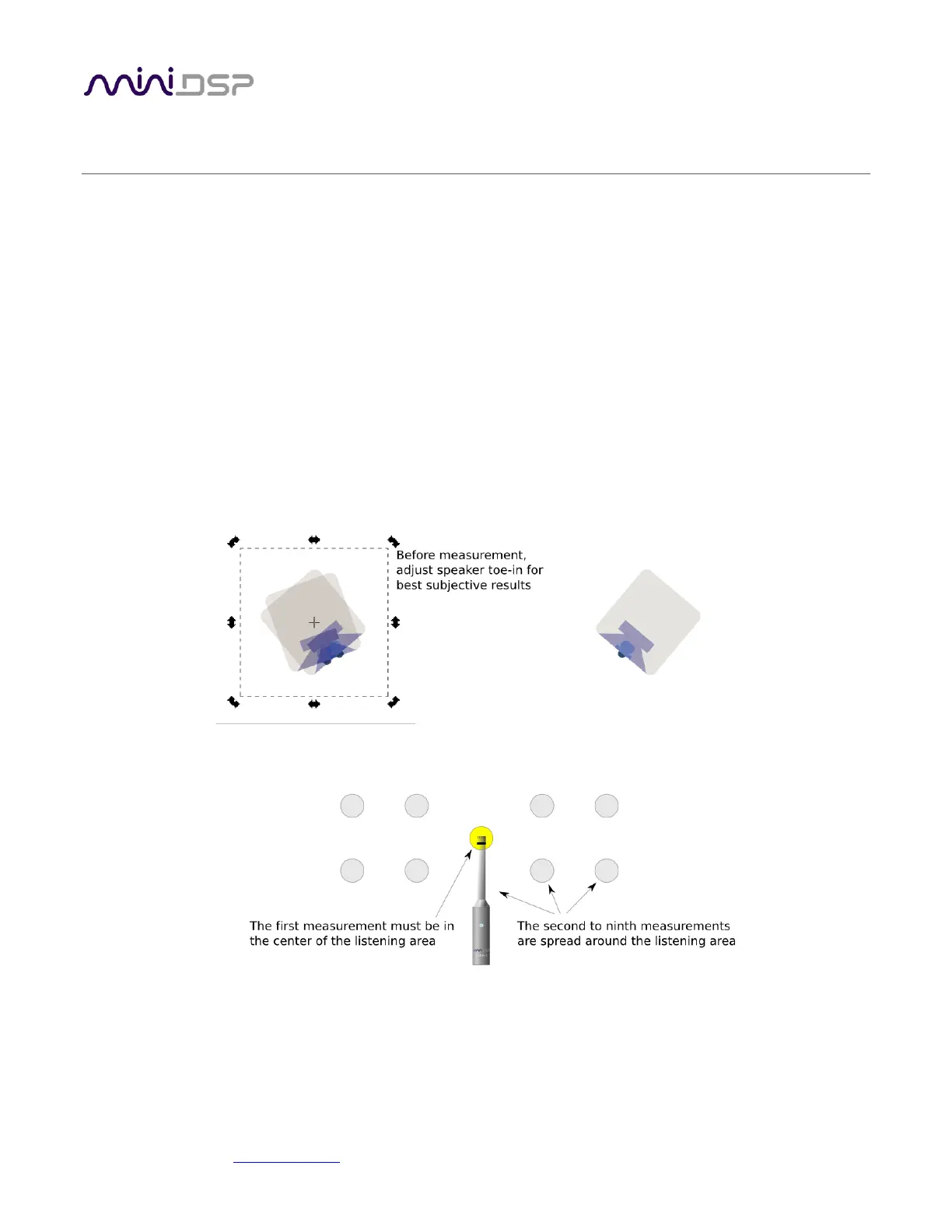 and pointed between the two speakers. The first measurement must be taken at the central location of the