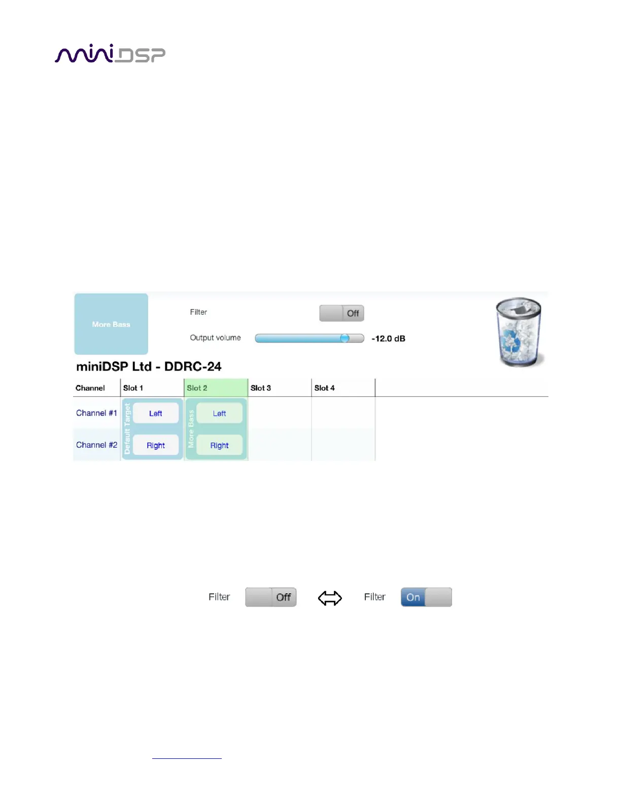 one filter for the right channel). Filter sets are managed with a “drag and drop” metaphor: