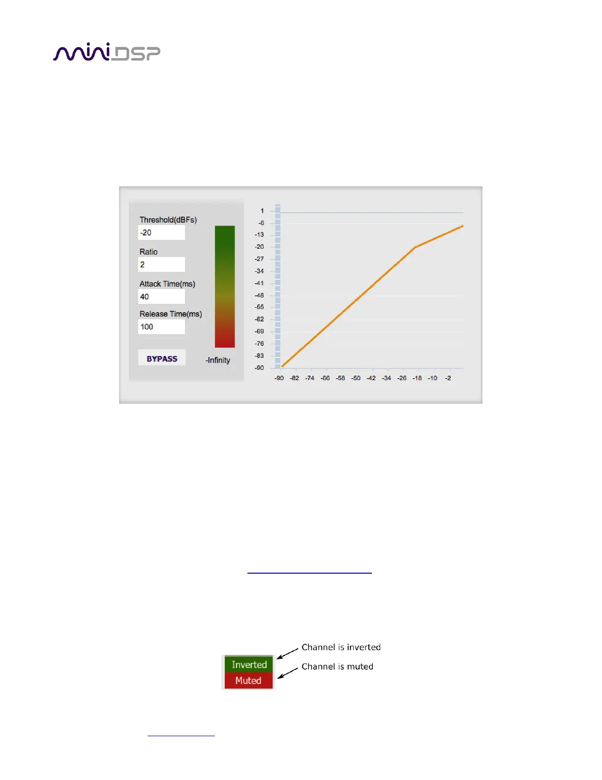 by the Threshold parameter. The gain of the channel will be progressively reduced as the signal increases above