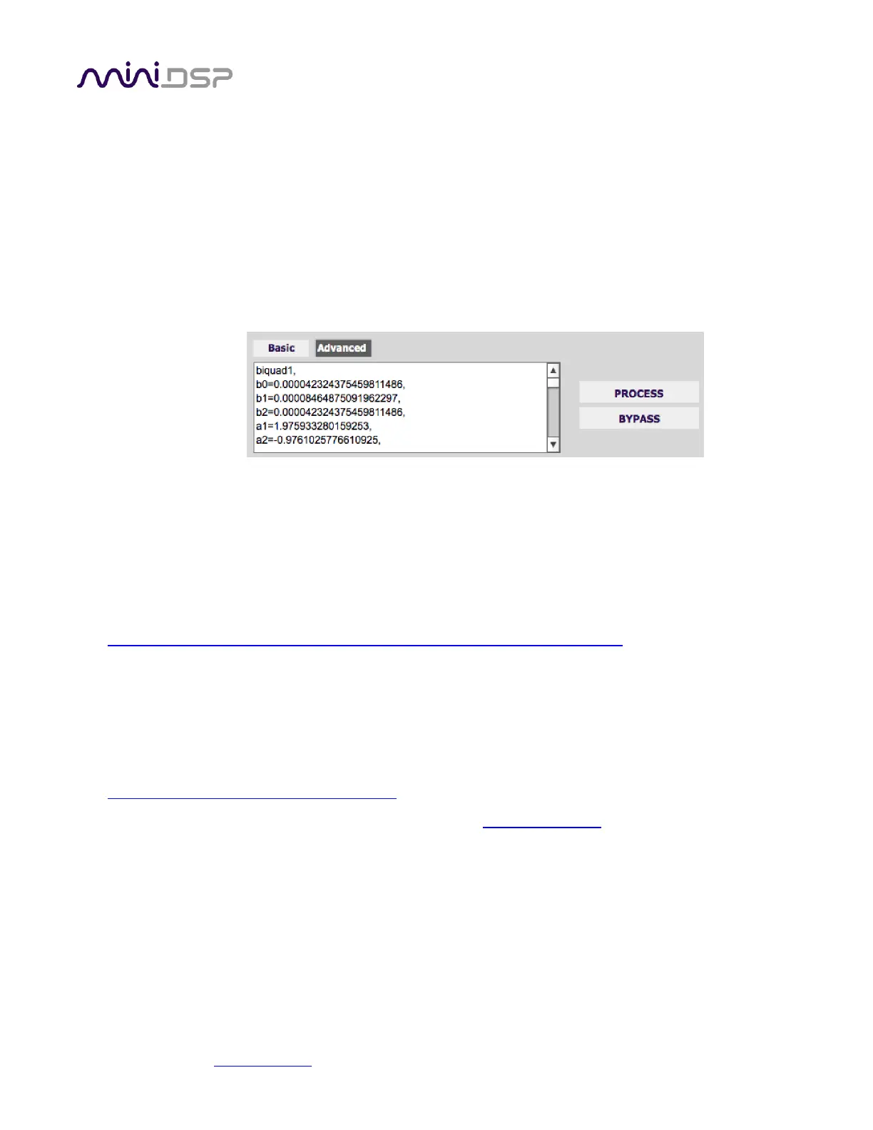that number of biquads will be imported. For example, if importing a file with six biquads, the first six