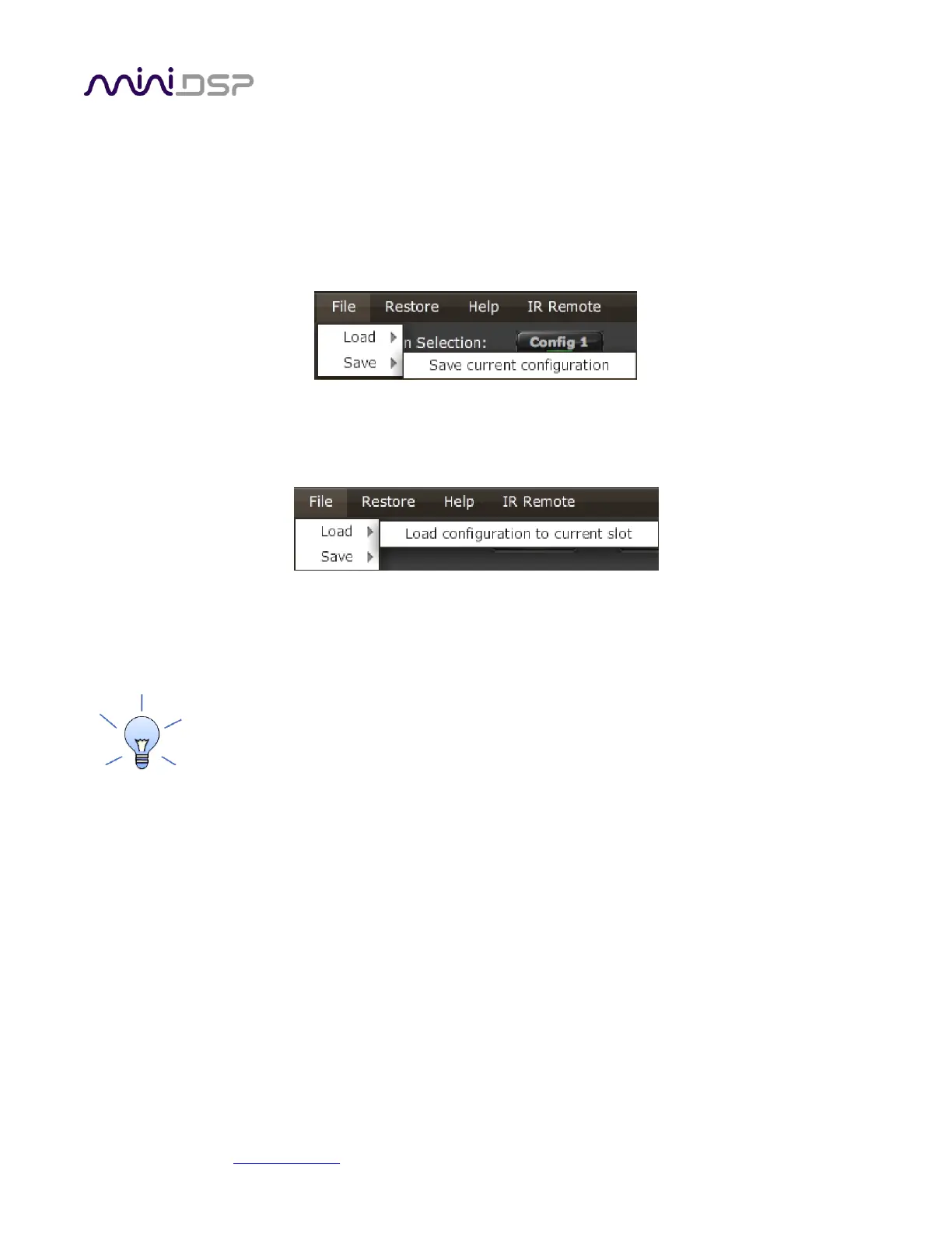 Dirac Live filters must be loaded and saved using the Dirac Live Calibration Tool for miniDSP.
