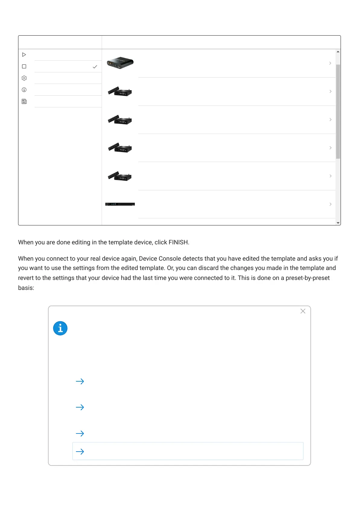 When you are done editing in the template device, click FINISH.