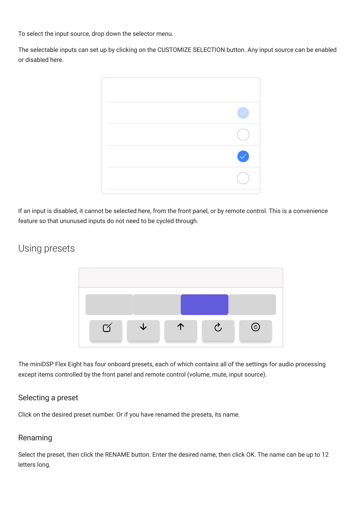 The miniDSPFlexEight has four onboard presets, each of which contains all of the settings for audio processing