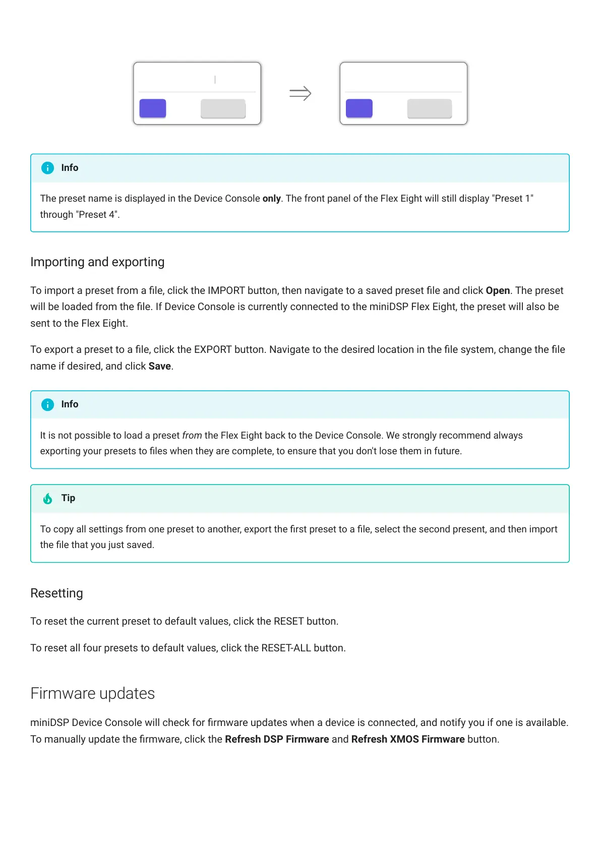 will be loaded from the le. If Device Console is currently connected to the miniDSPFlexEight, the preset will also be