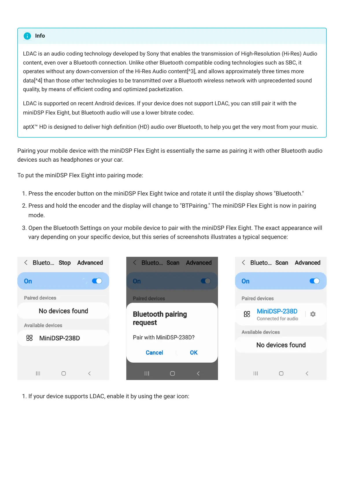 1. If your device supports LDAC, enable it by using the gear icon: