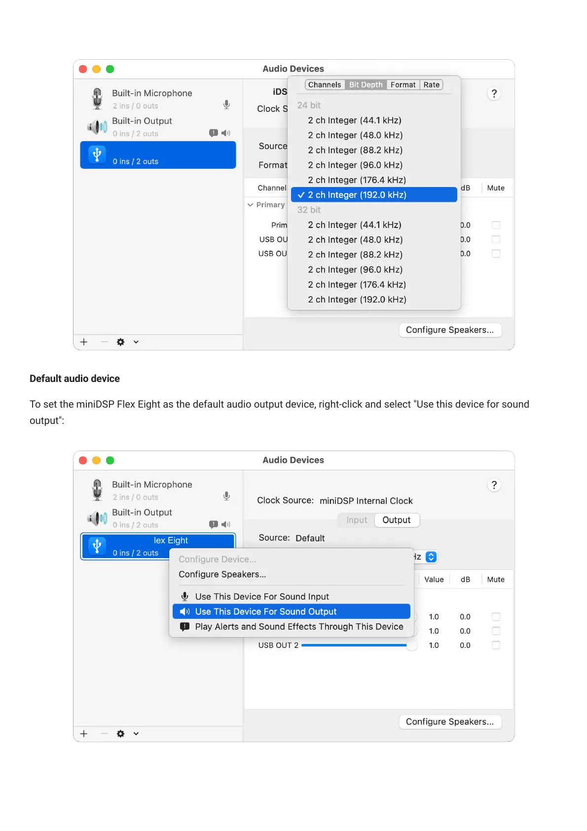 To set the miniDSPFlexEight as the default audio output device, right-click and select "Use this device for sound