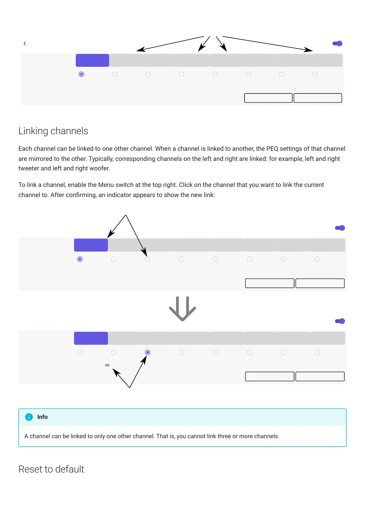Each channel can be linked to one other channel. When a channel is linked to another, the PEQ settings of that channel