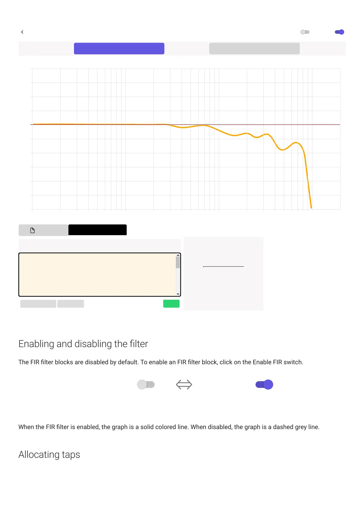 The FIR lter blocks are disabled by default. To enable an FIR lter block, click on the EnableFIR switch.