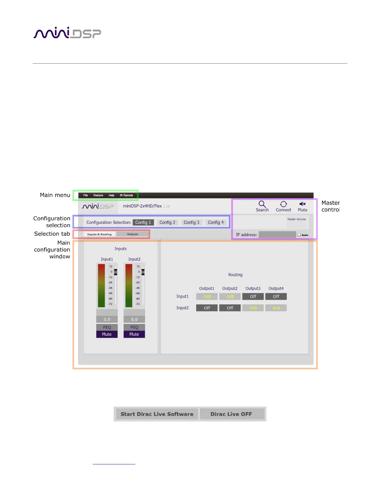 • The miniDSP-2x4-HD plugin is used if the Flex is in standard mode – that is, without Dirac Live.