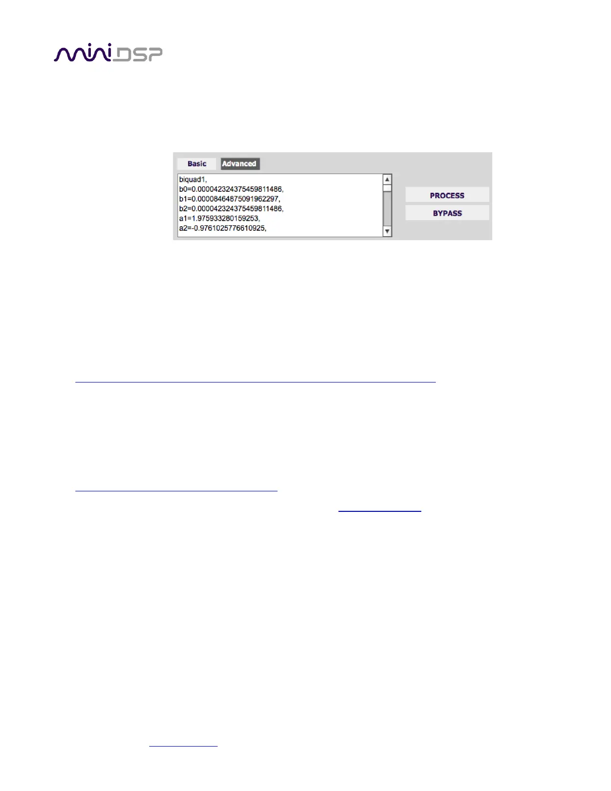 need to be specified. After pasting in the coefficients, click on the Process button for them to take effect.