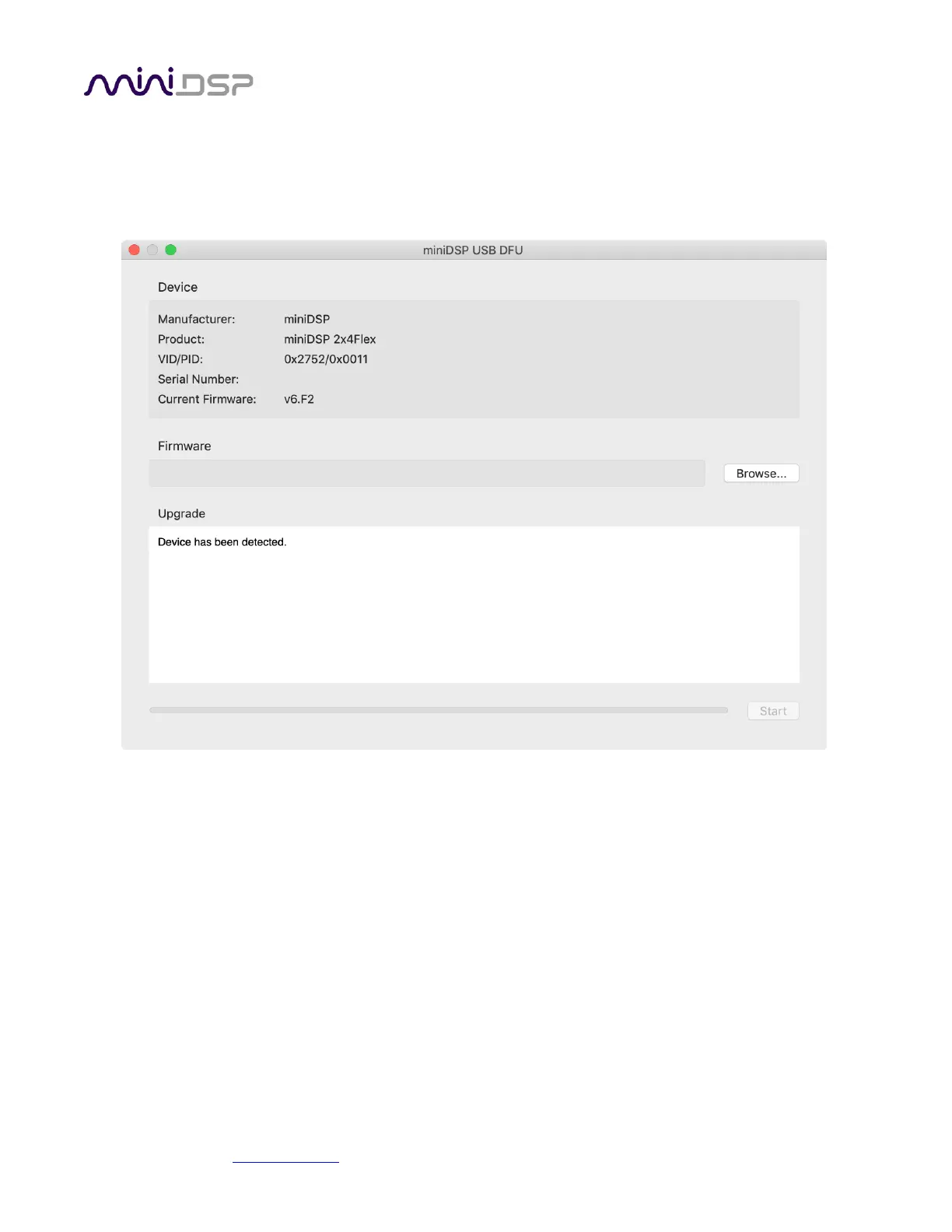 1. Connect the miniDSP Flex to your computer via USB (if not already connected) and power it on.