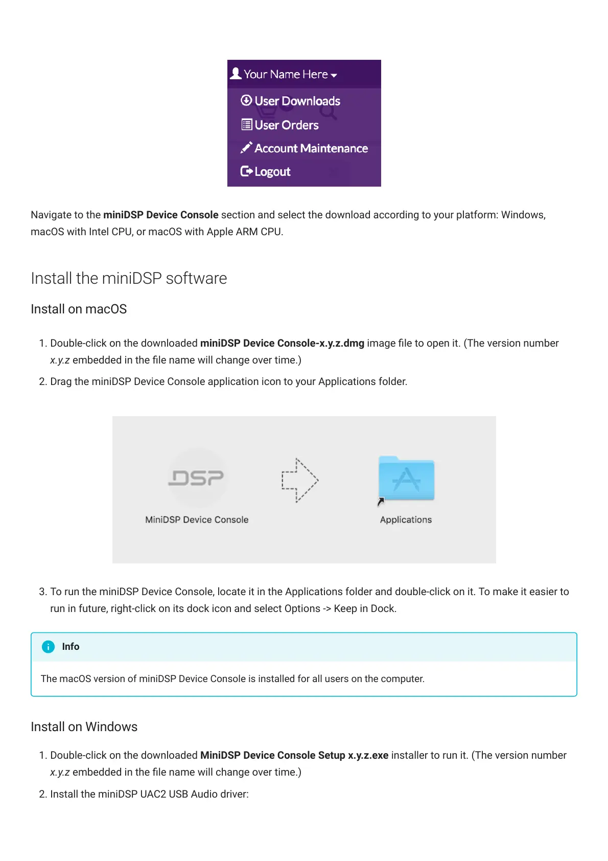 Navigate to the miniDSP Device Console section and select the download according to your platform: Windows,