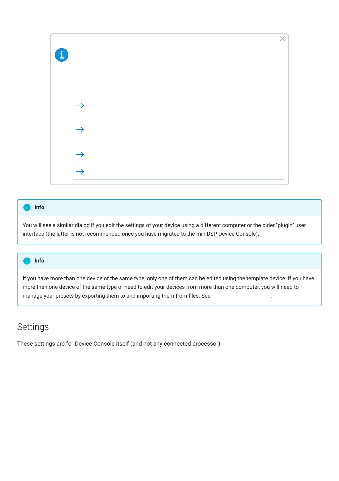 interface (the latter is not recommended once you have migrated to the miniDSPDeviceConsole).