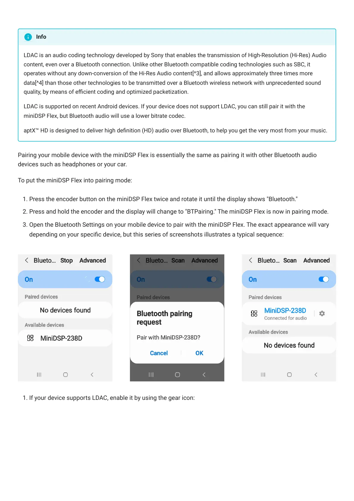 Pairing your mobile device with the miniDSPFlex is essentially the same as pairing it with other Bluetooth audio