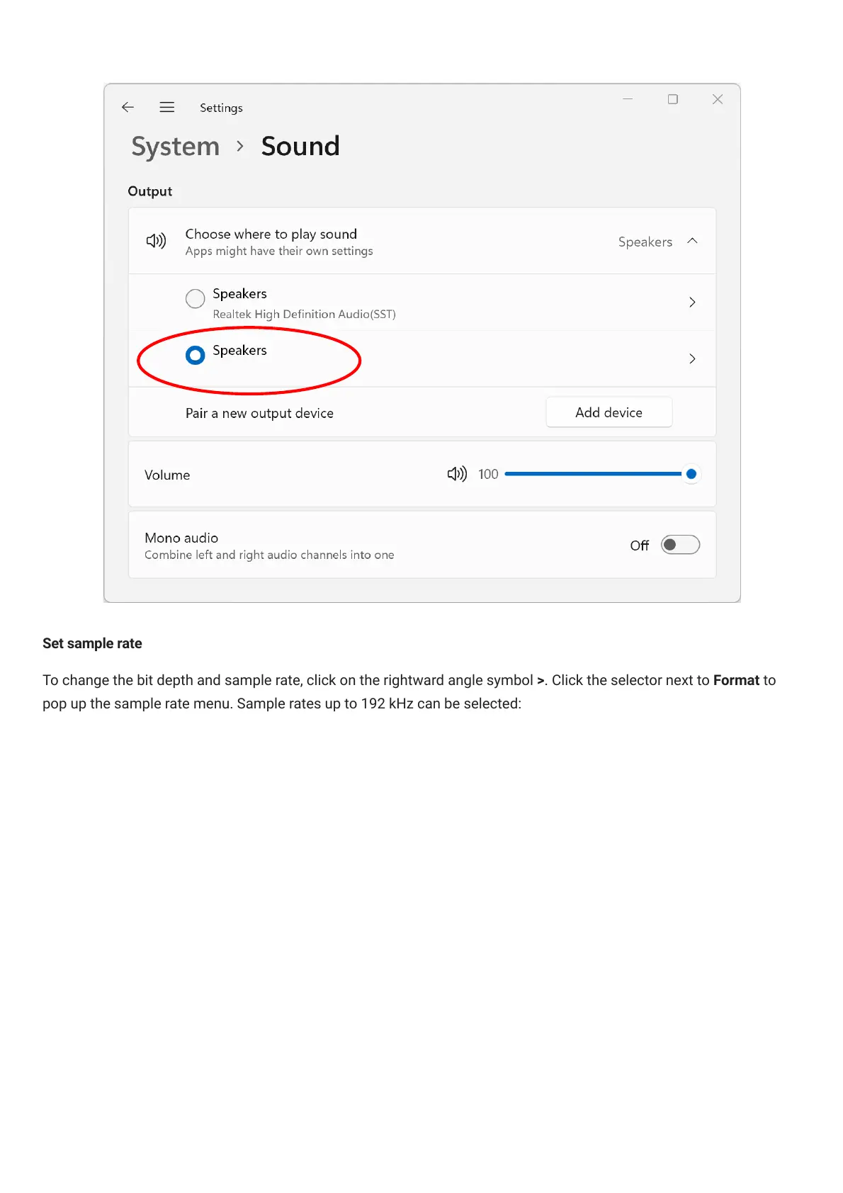 To change the bit depth and sample rate, click on the rightward angle symbol >. Click the selector next to Format to