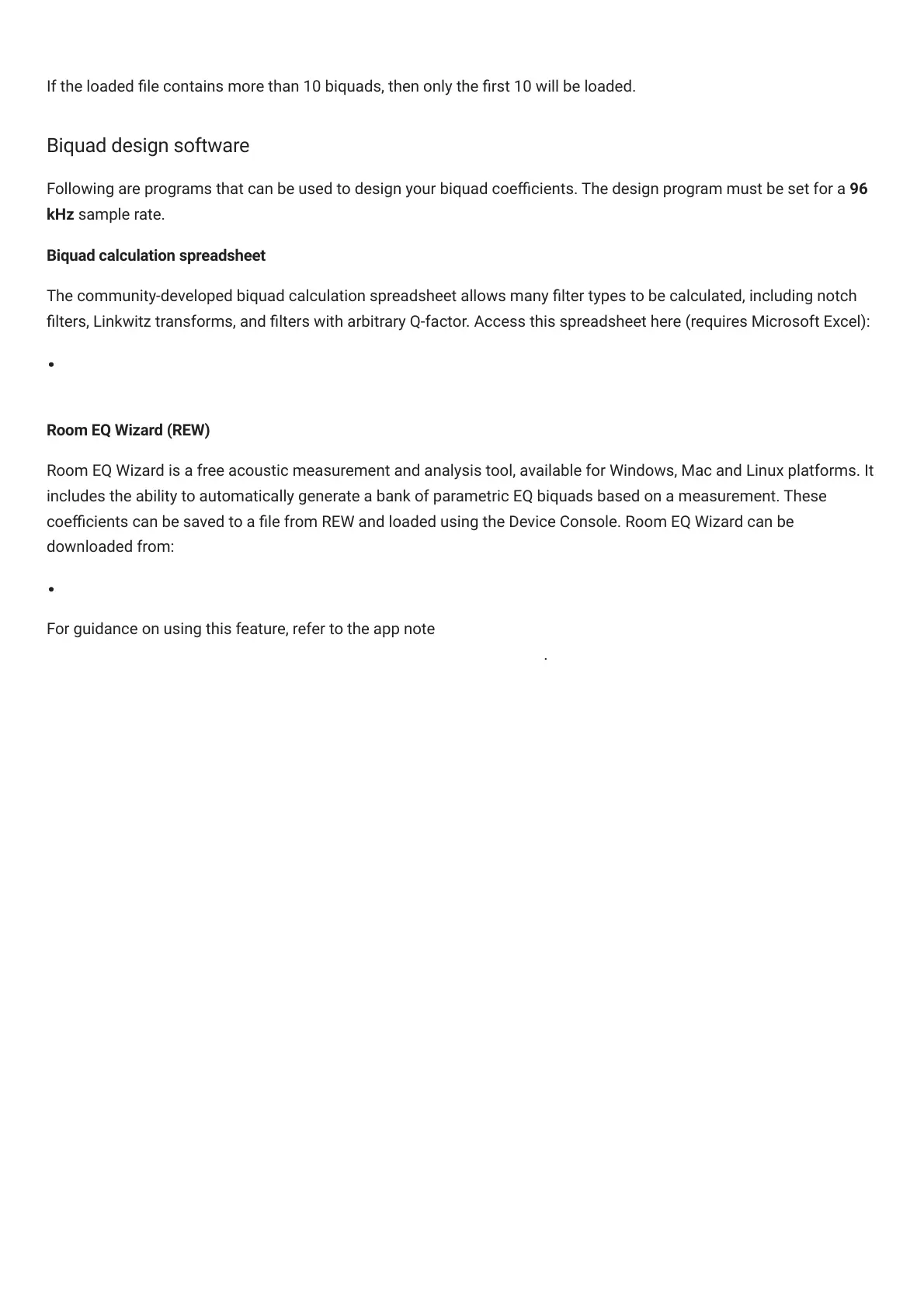 coecients can be saved to a le from REW and loaded using the DeviceConsole. Room EQ Wizard can be