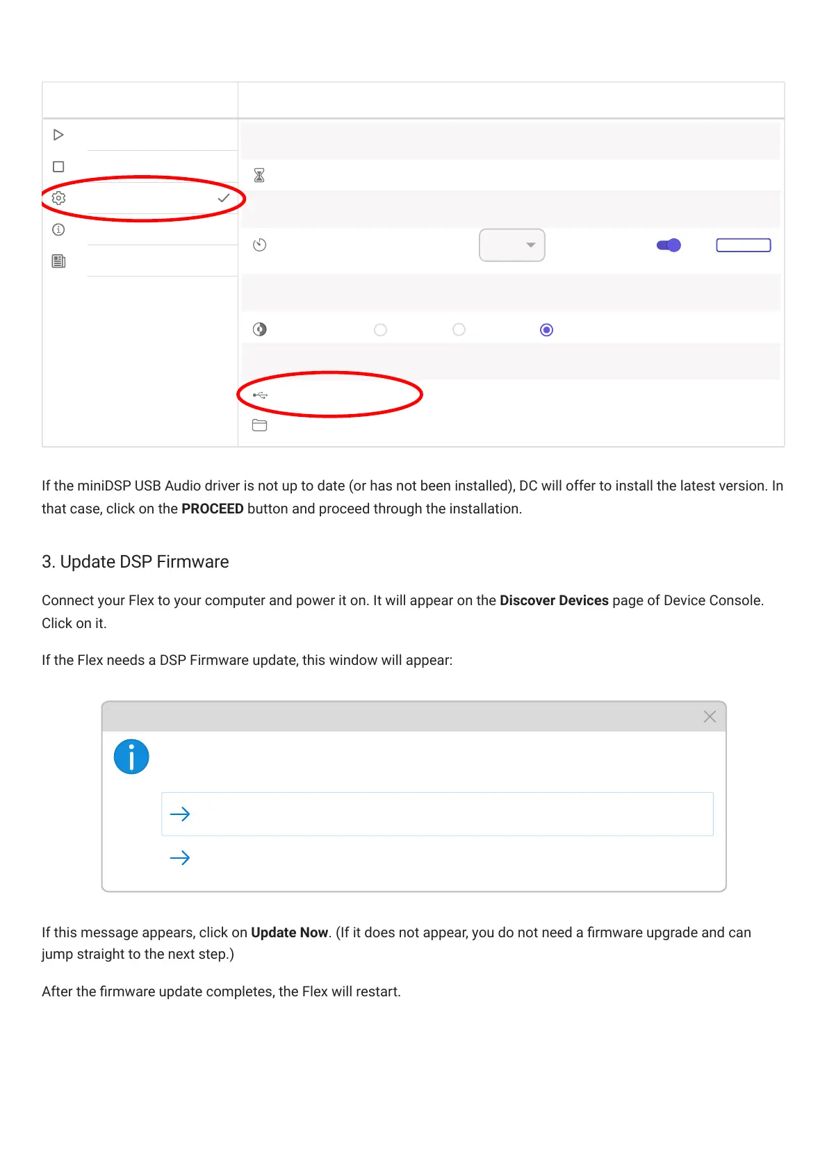 If the miniDSP USB Audio driver is not up to date (or has not been installed), DC will offer to install the latest version. In