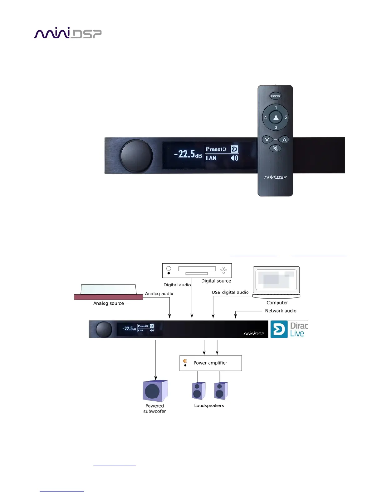 display. The included basic miniDSP remote control provides easy access to the main user operations, including