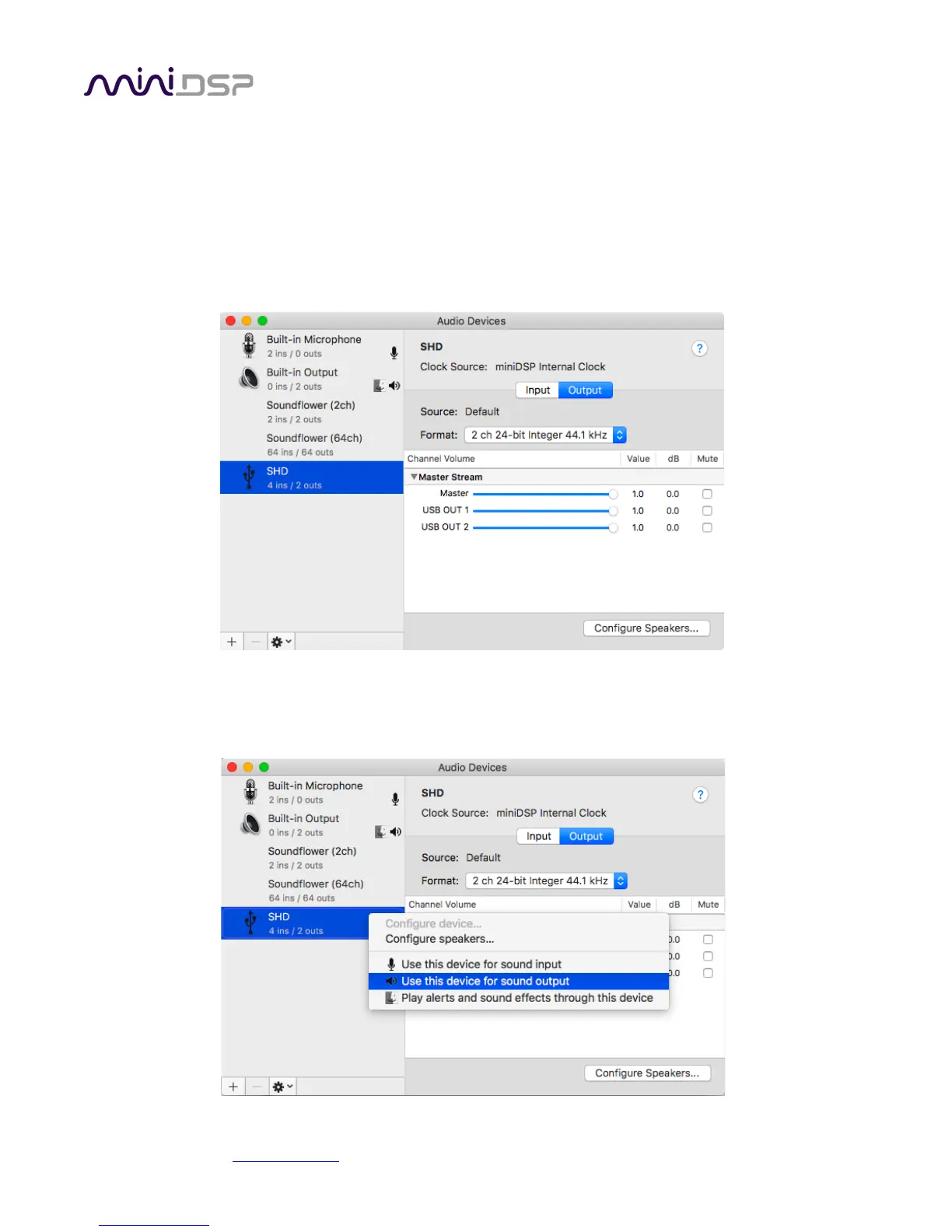 Open the program Audio MIDI Setup (in Applications->Utilities). Clicking on “SHD” in the list on the left-hand