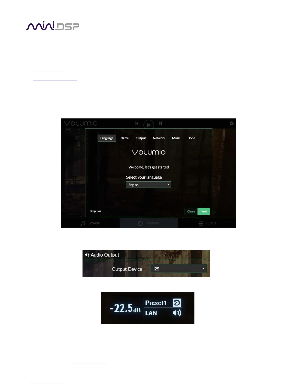 Check that the audio output will be routed from Volumio to the internal DSP by dropping down the gear icon