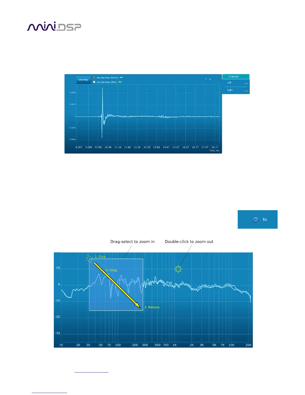 The magnitude and impulse response graphs can be viewed at a larger scale. To zoom in and out on the