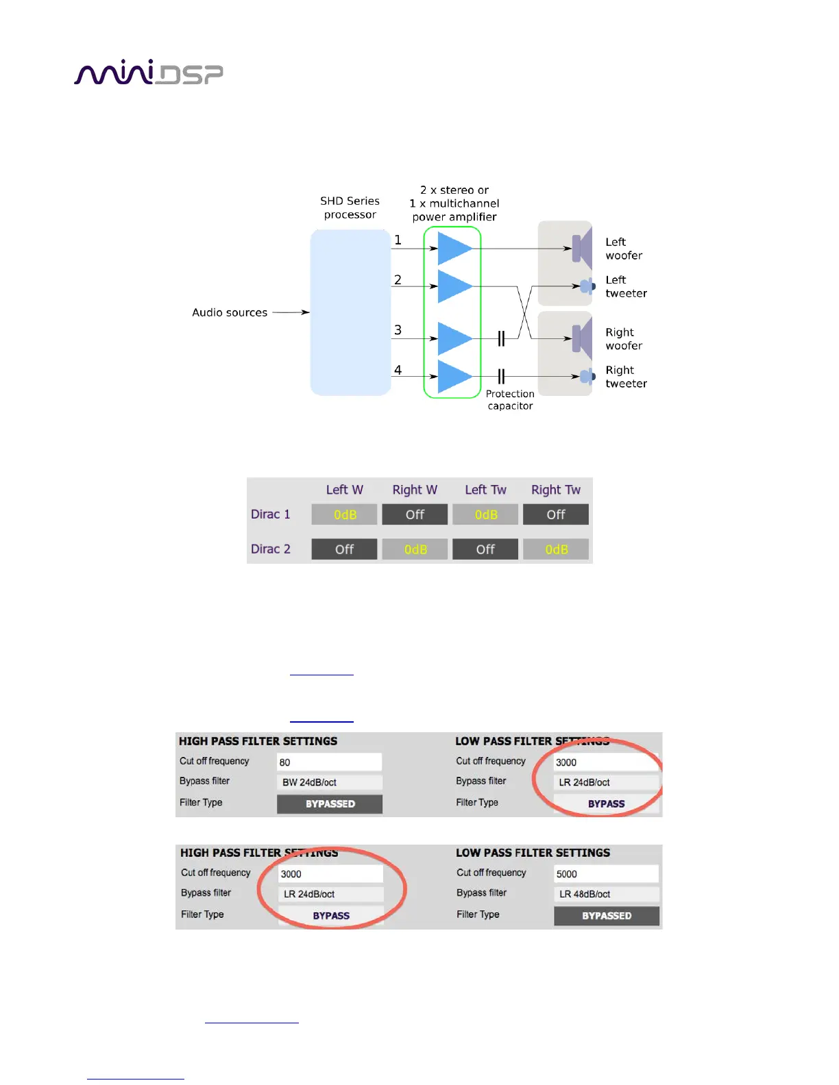 The miniDSP SHD Series processors can implement a two-way active speaker as well as provide room correction.