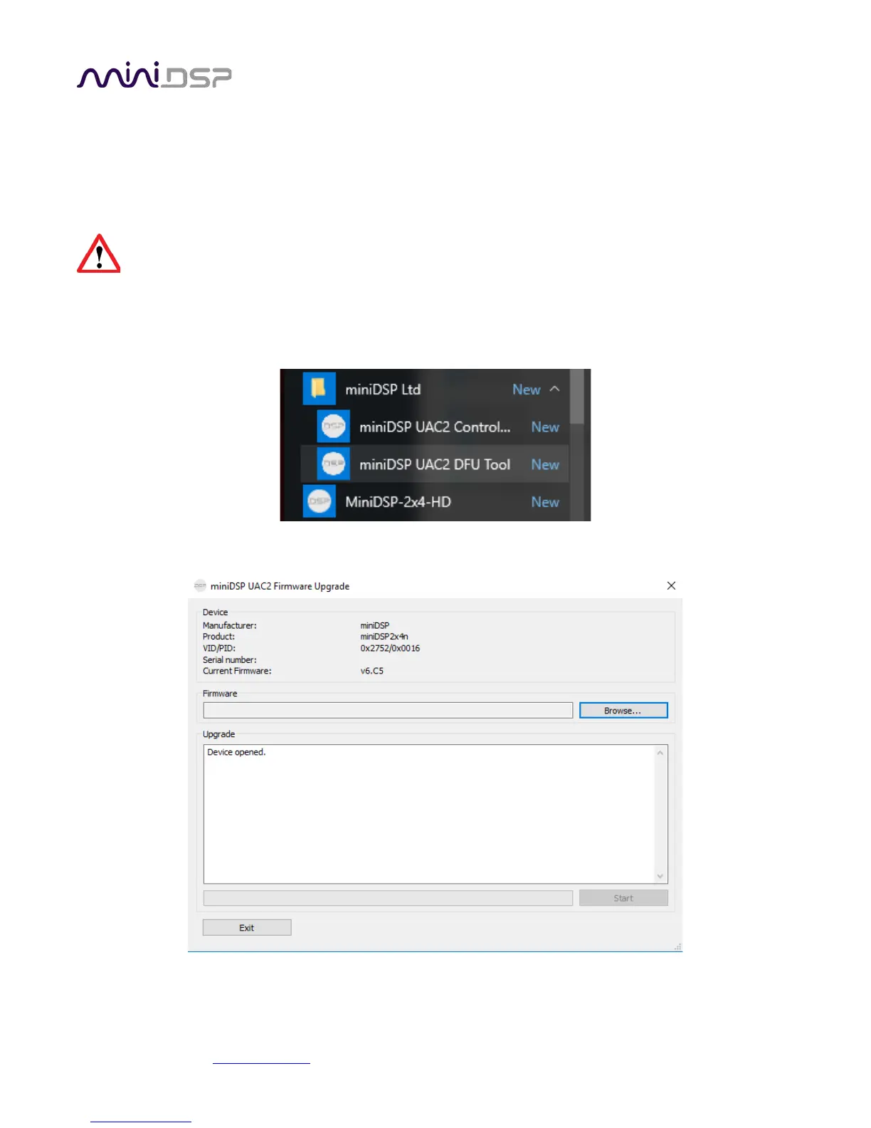 miniDSP may occasionally provide an upgrade to the processor’s MCU firmware to enable new features. To