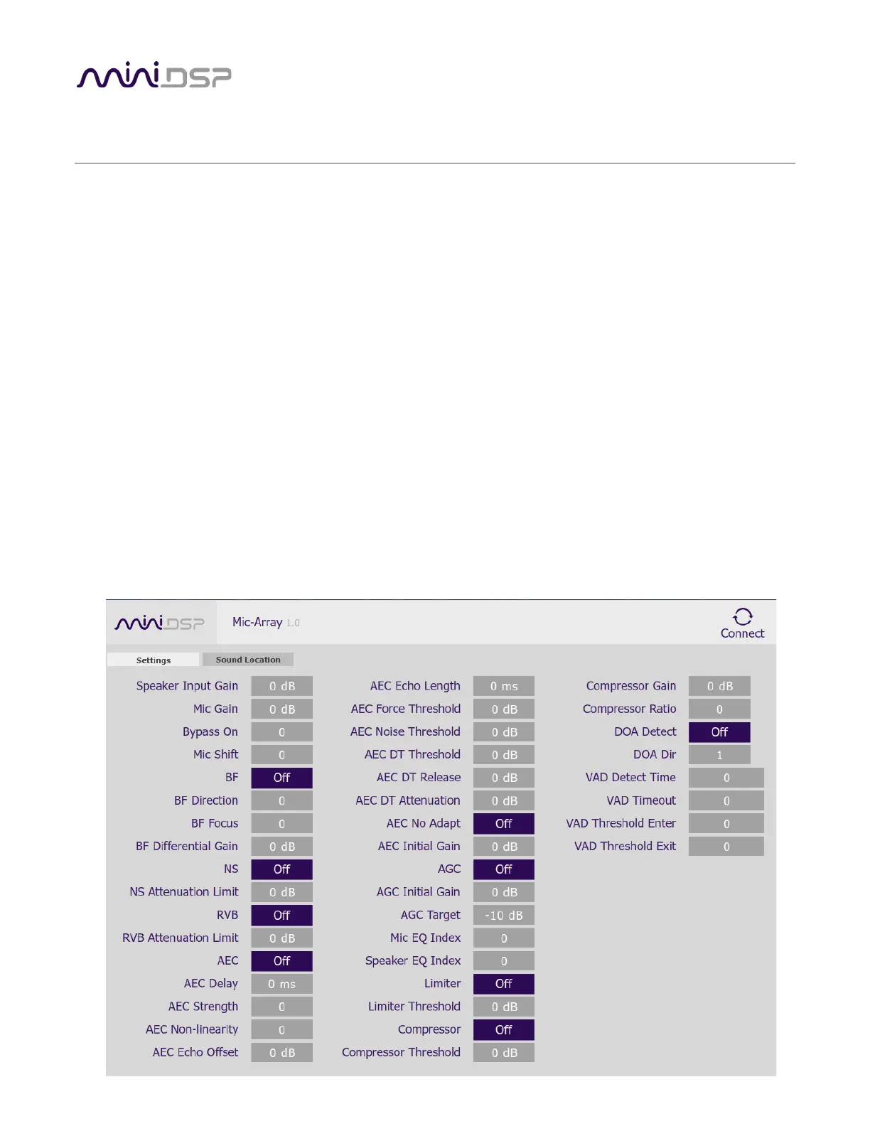 The below GUI is a real time interface which will sync onboard setting when you CONNECT to the board.