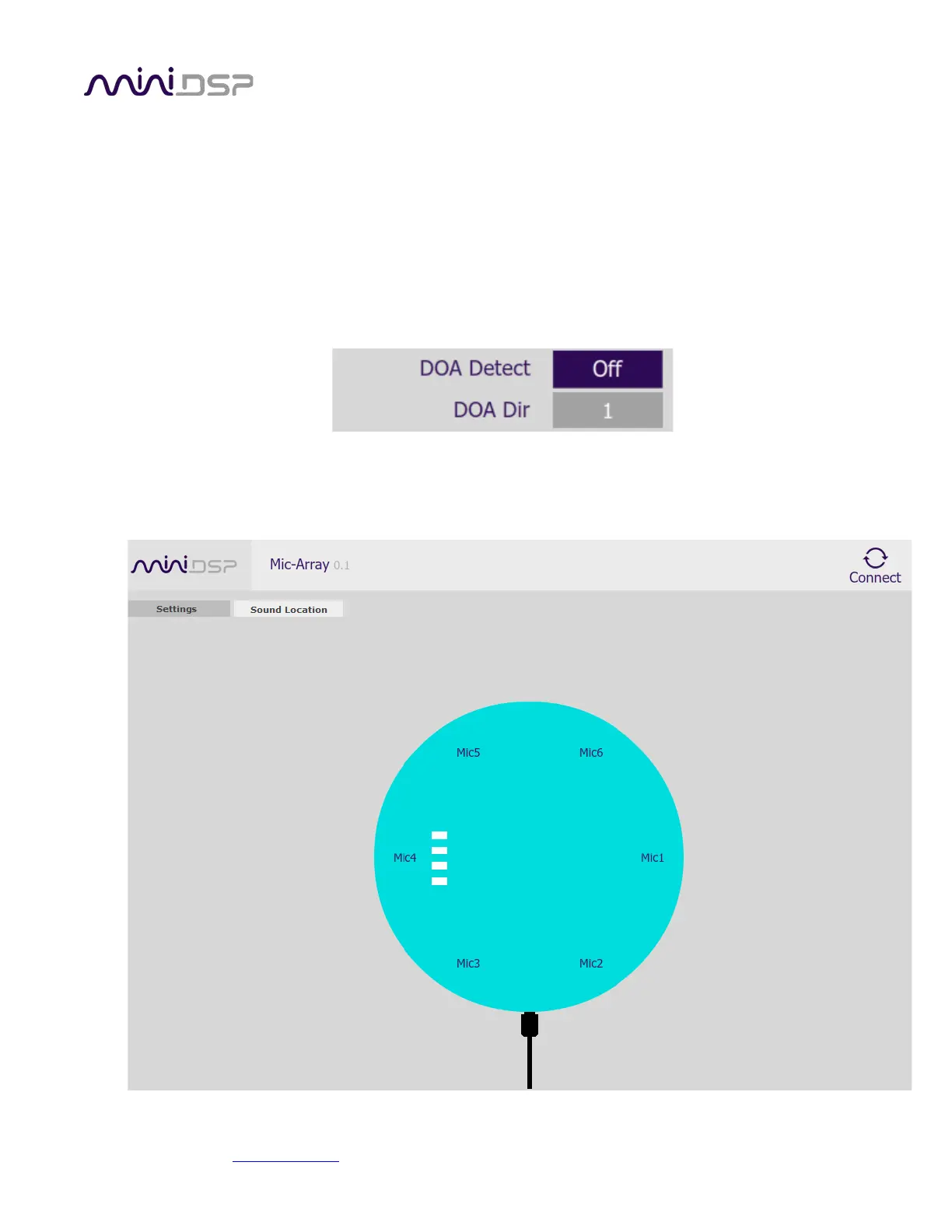 On the second tab of the MicArray GUI, one can monitor real time the Direction Of Arrival (DOA) as detected by