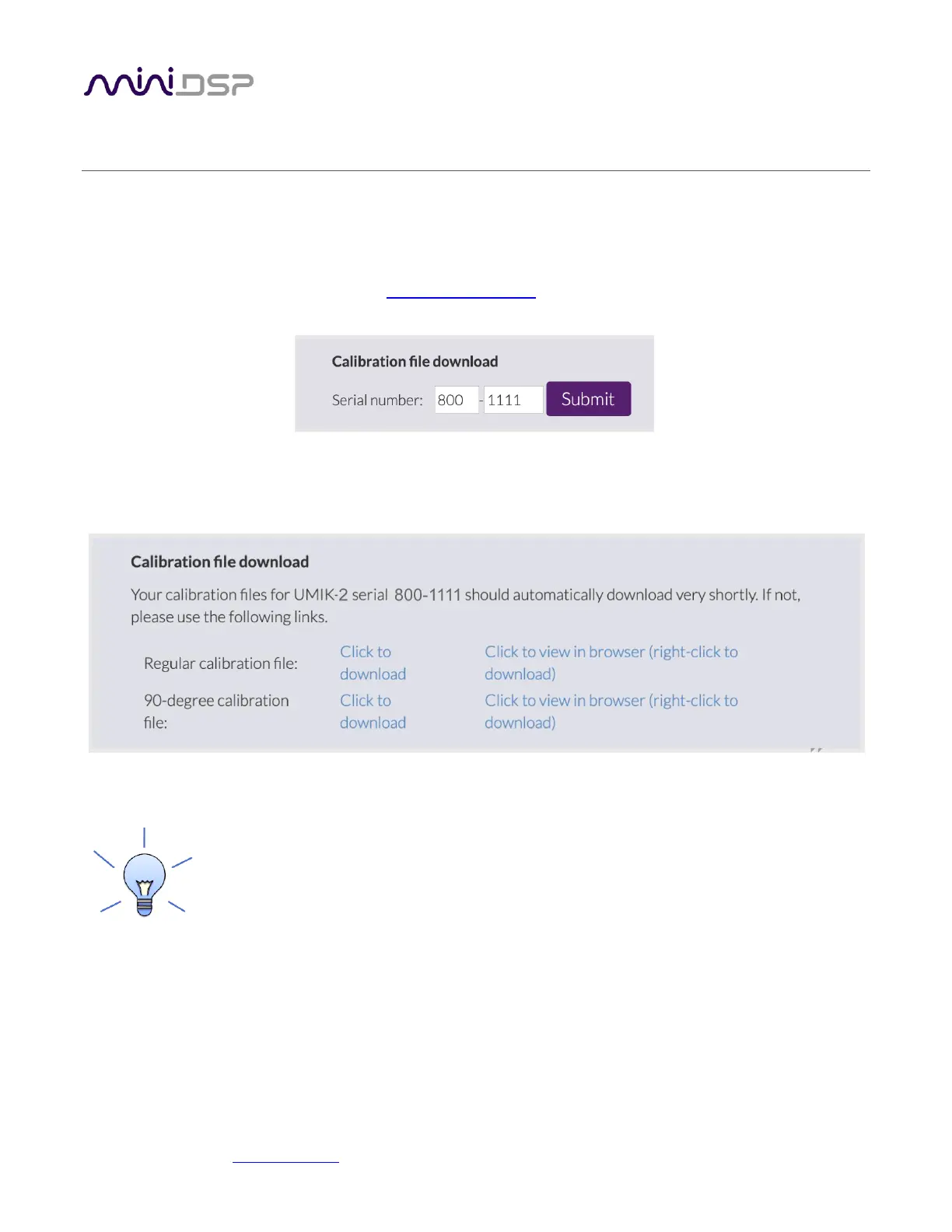 To download the calibration files, go to the UMIK-2 product page and scroll down to the section “Unique