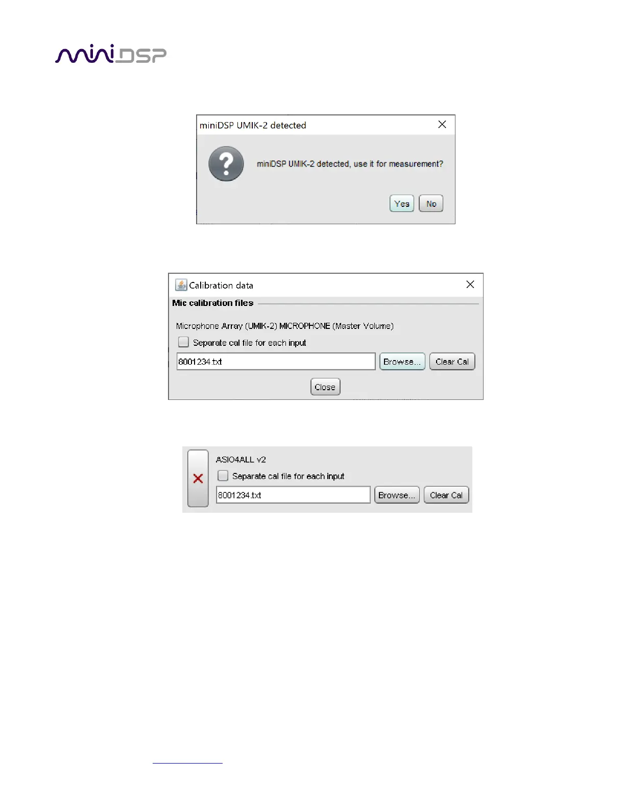 6. Click Yes, and select the calibration file to be used for ASIO4ALL: