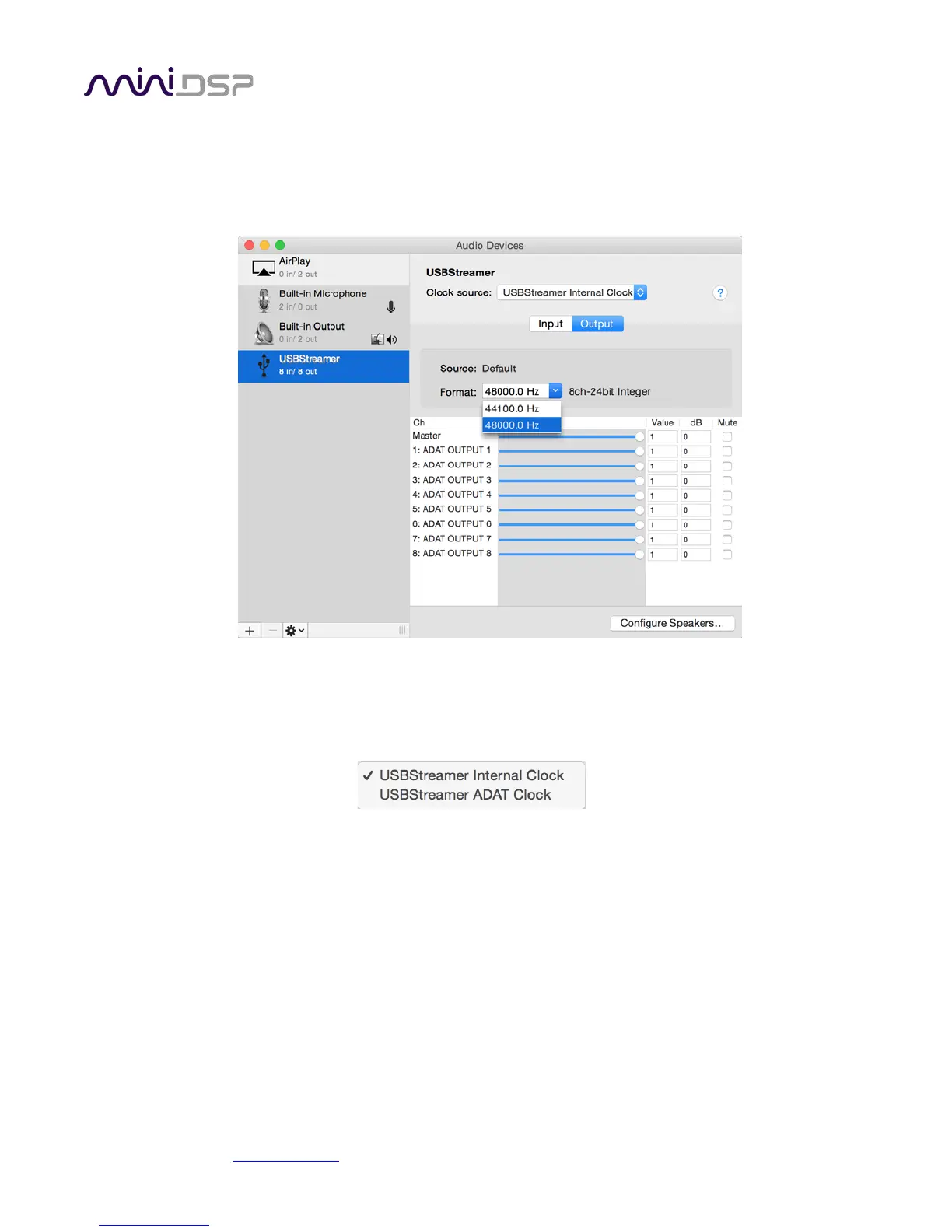 Open the program Audio MIDI Setup (in Applications->Utilities). Click on the device USBStreamer that appears in