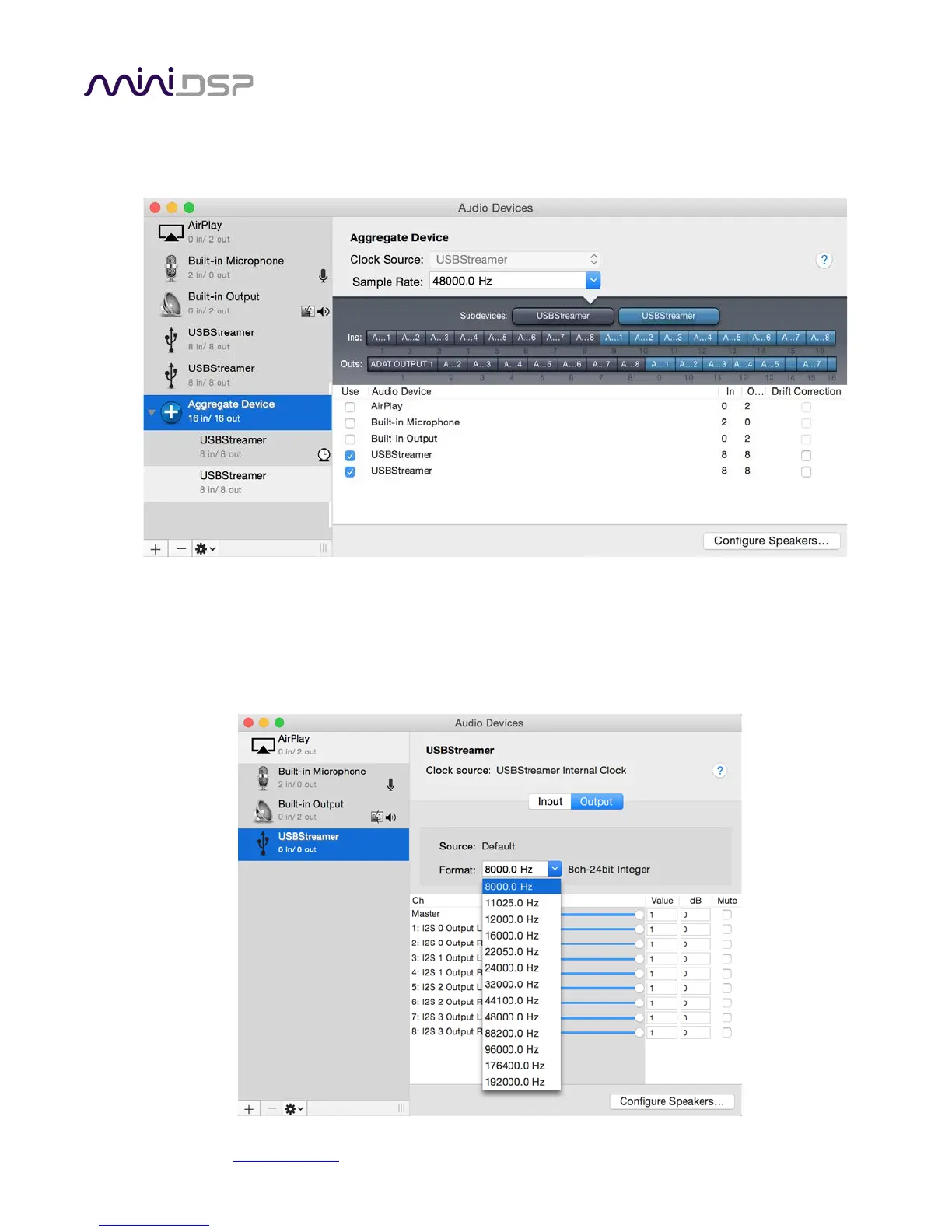 Open the program Audio MIDI Setup (in Applications->Utilities). Click on the device USBStreamer that appears in