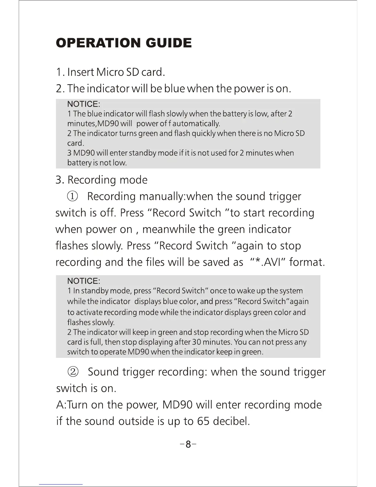 MiniDV MD90 - Operation Guide; Recording Mode