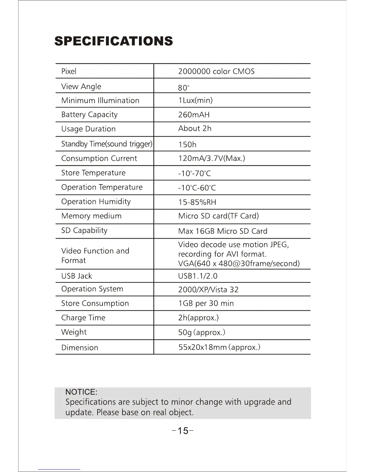 MiniDV MD90 - Specifications