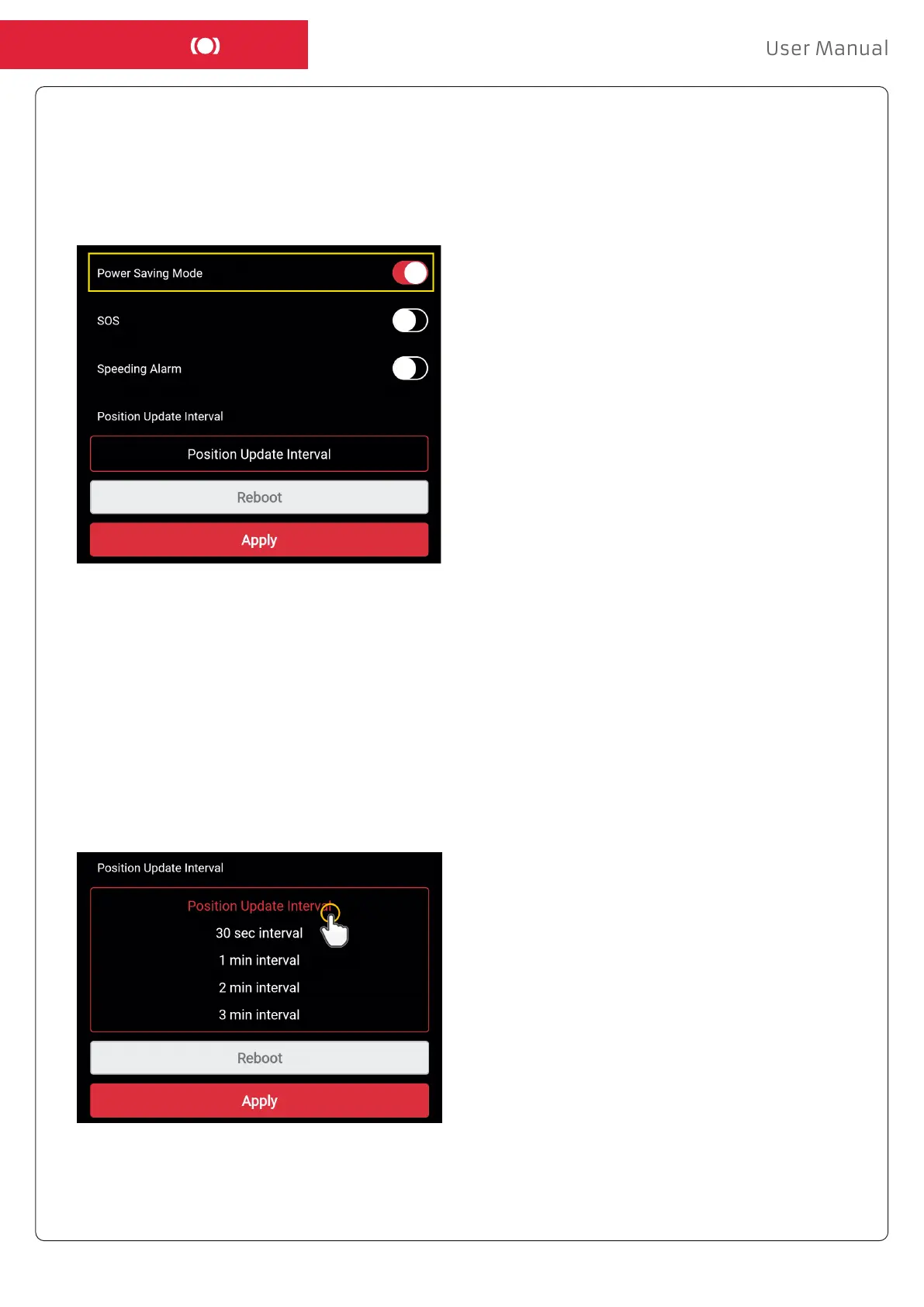 Power Saving Mode is an eective way to optimize battery life. GPS and GSM modules will only be