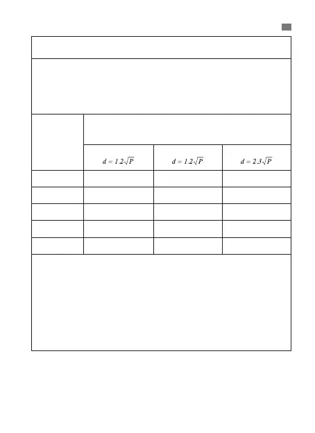 indicada en esta tabla, la distancia de separación recomendada d en metros