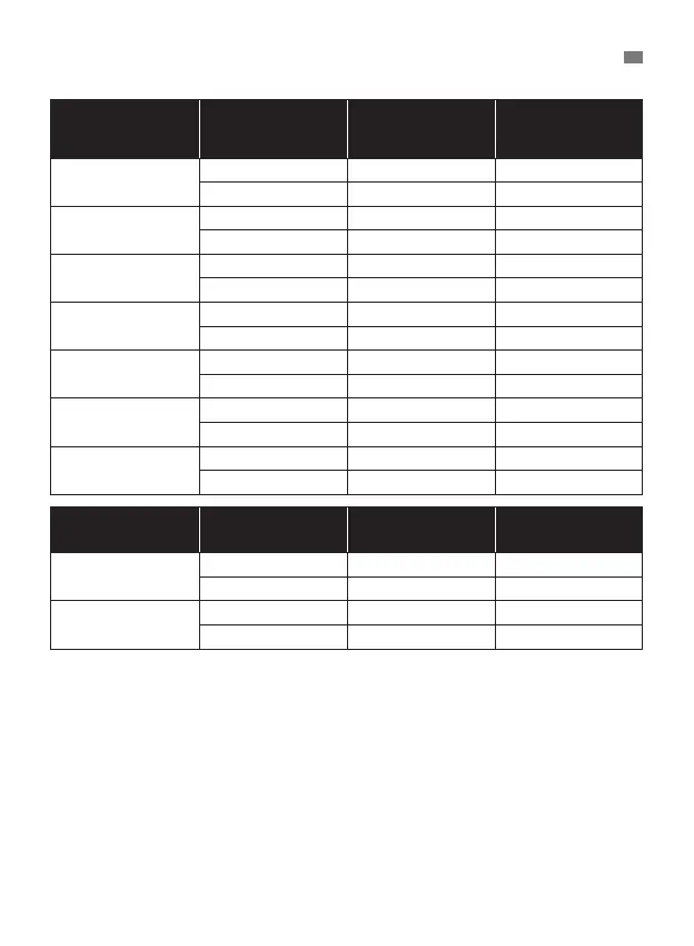 IMPORTANTE: seguendo le istruzioni contenute nella tabella, dopo il riscaldamento