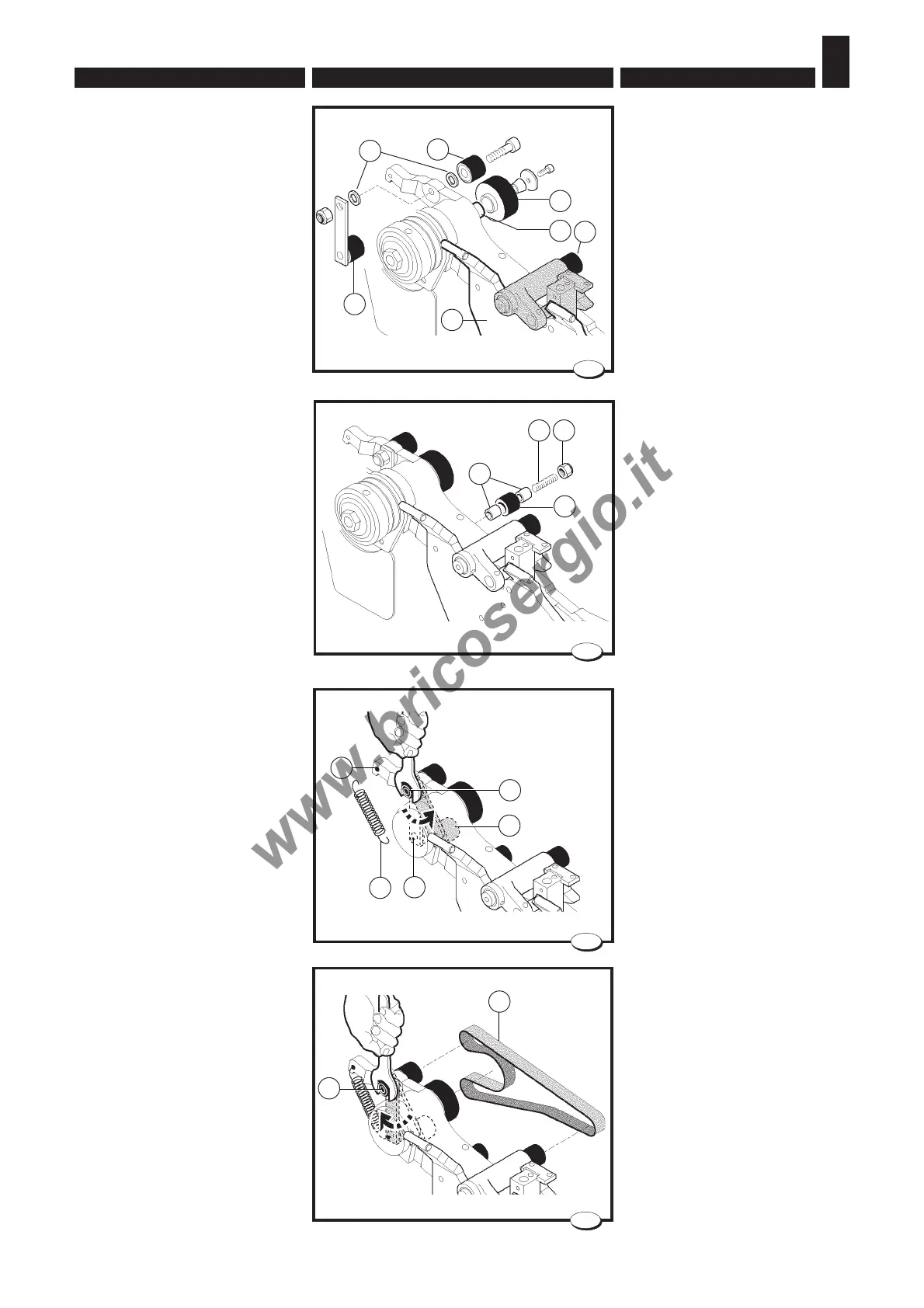 - montare la puleggia E e il grup-