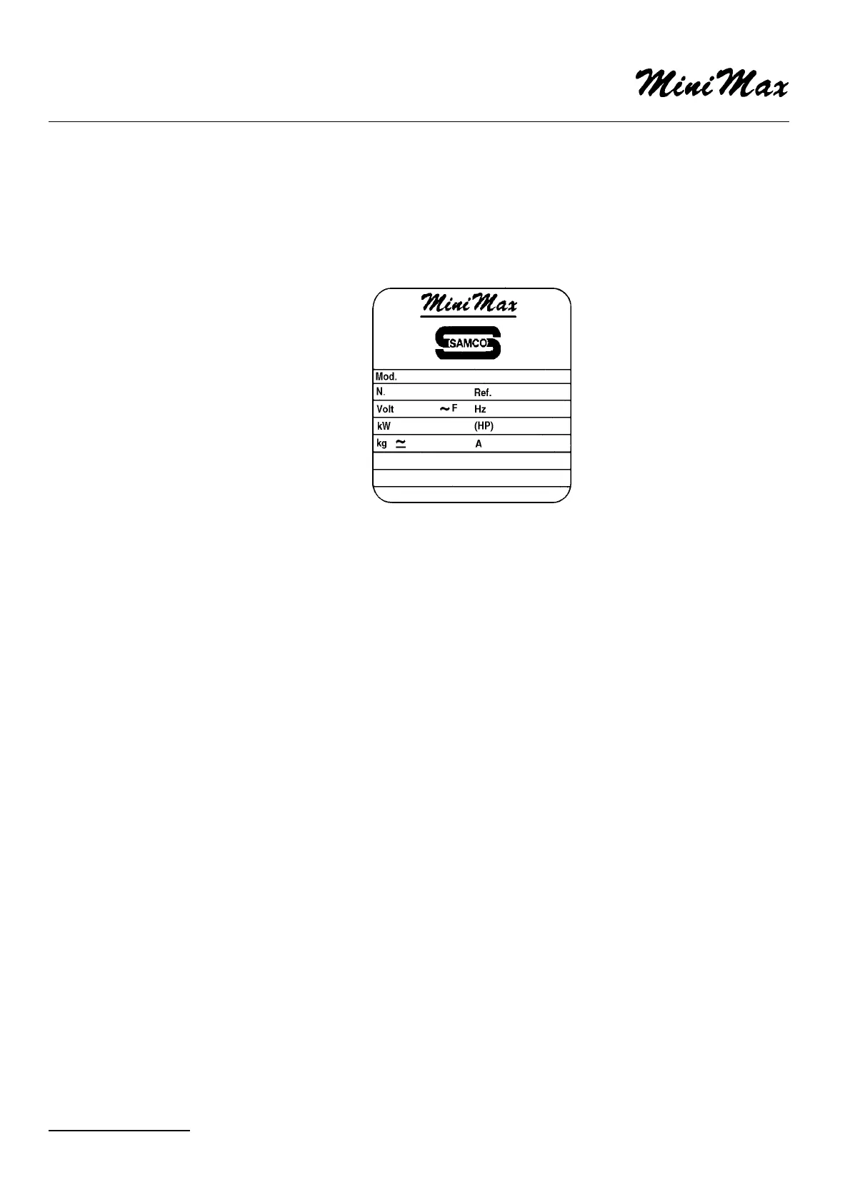 Machine data are punched on the metallic plate applied to the side of the machine frame.