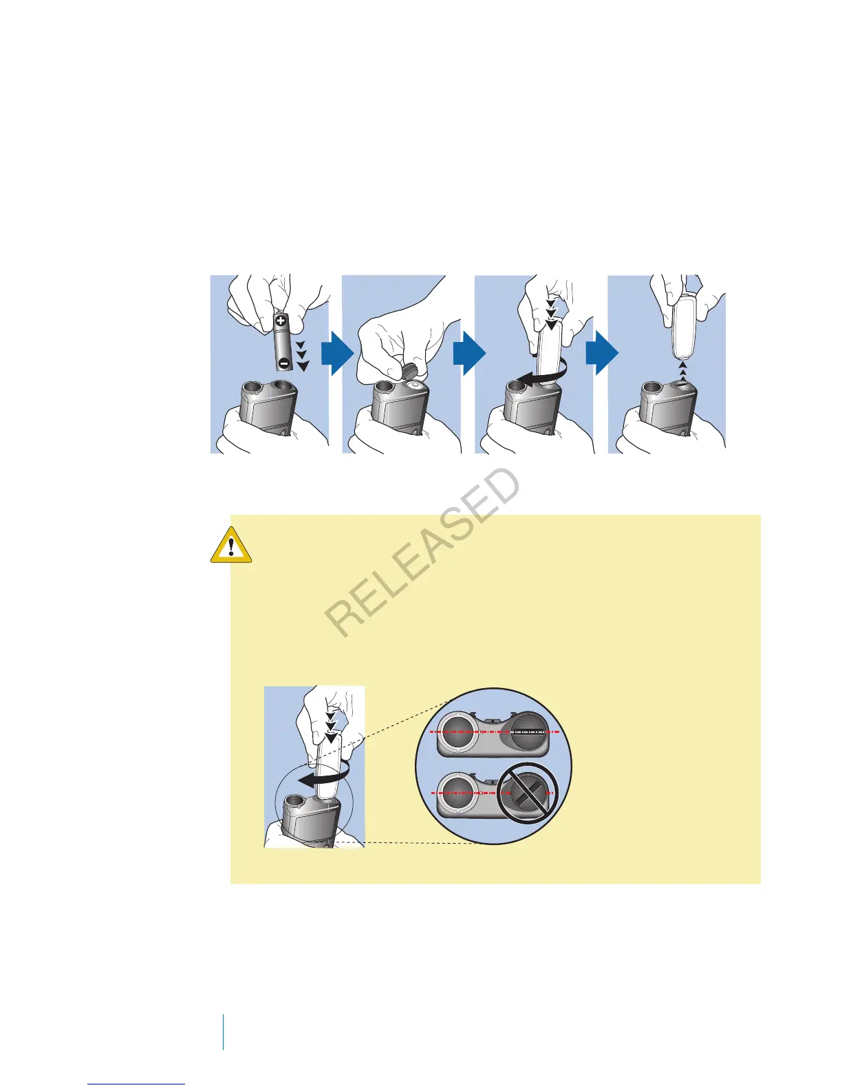 recognizing the new battery. Turn the battery cap clockwise until