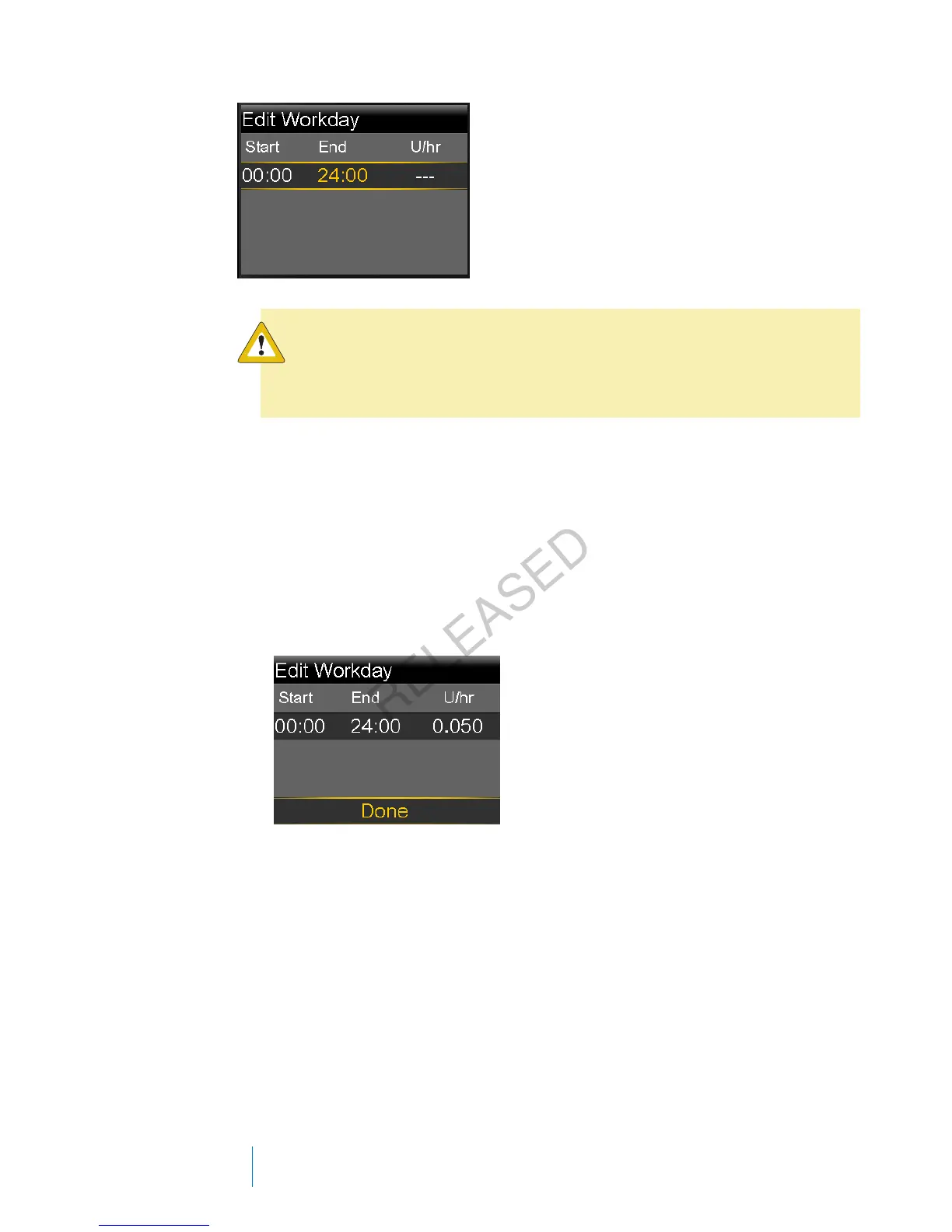 Caution: Insulin is delivered in units per hour. If you set a basal