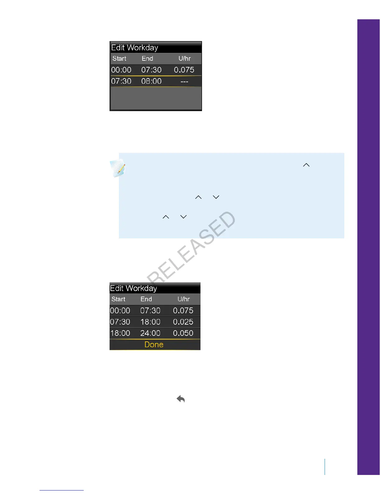 7. When you finish setting your basal pattern, select Done. (The Done option