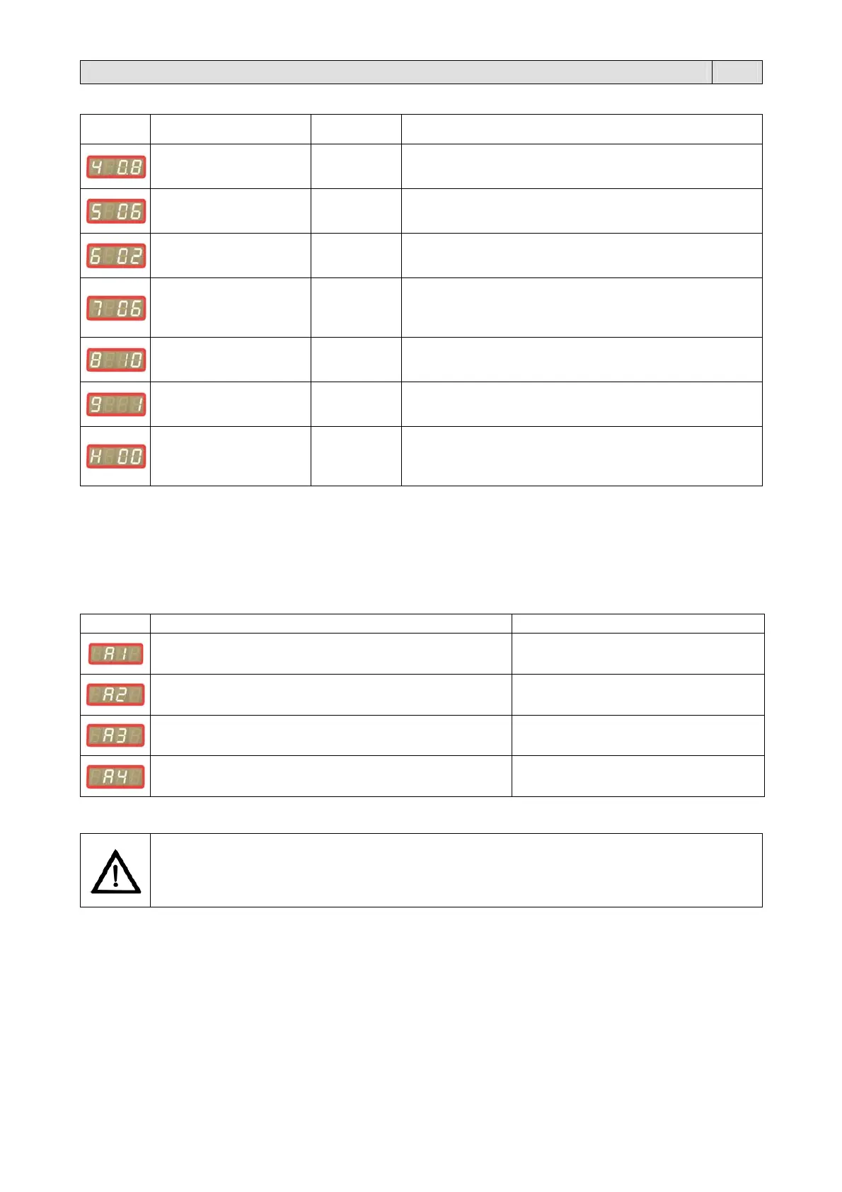 In caso di “allarme” interviene il segnale acustico e sul display compaiono le seguenti sigle: