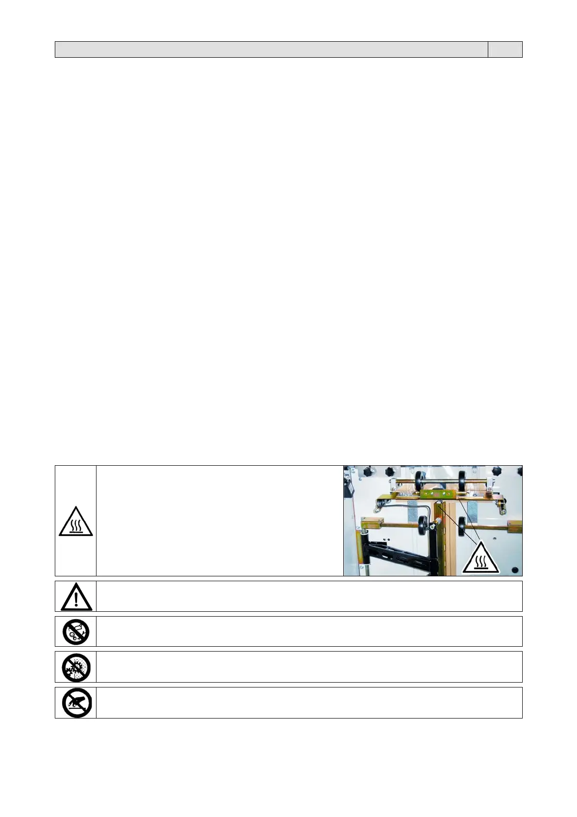 The machine is not considered as having a high level of danger. However, it is necessary to comply with the restrictions