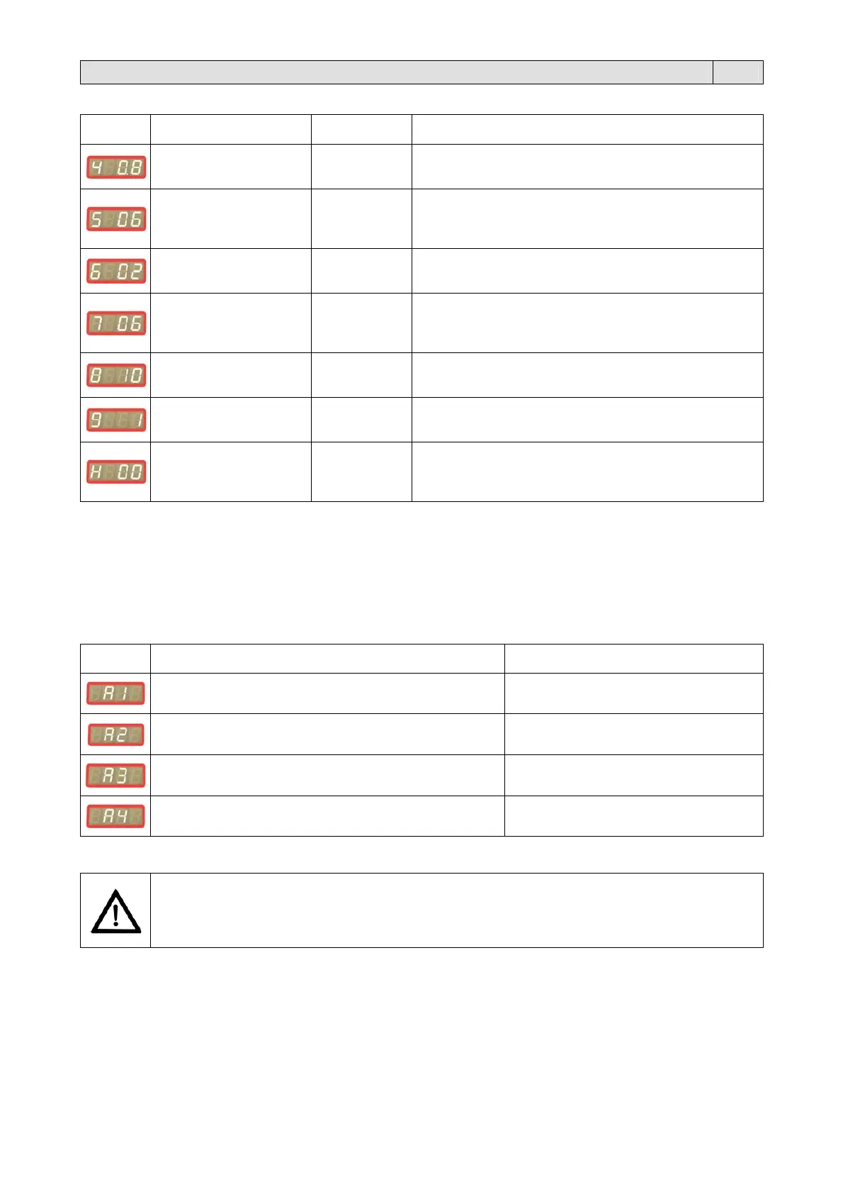 En caso de “alarmas” interviene la señal acústica y en el display aparecen las siguientes siglas: